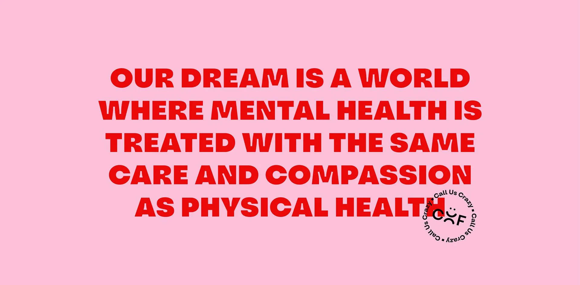 Create a bold and daring brand identity, reflecting the courage needed to tackle complex societal issues. Emphasize the transformative power of conversation over a cup of coffee to spark change and understanding. The slogan "Call Us Crazy" endeavors to build a community and reshape the notion of 'craziness' into a positive force. We embrace this label because we passionately believe in our objectives: envisioning a world where mental health receives the same level of care as physical well-being, and striving towards a future free from suicide.