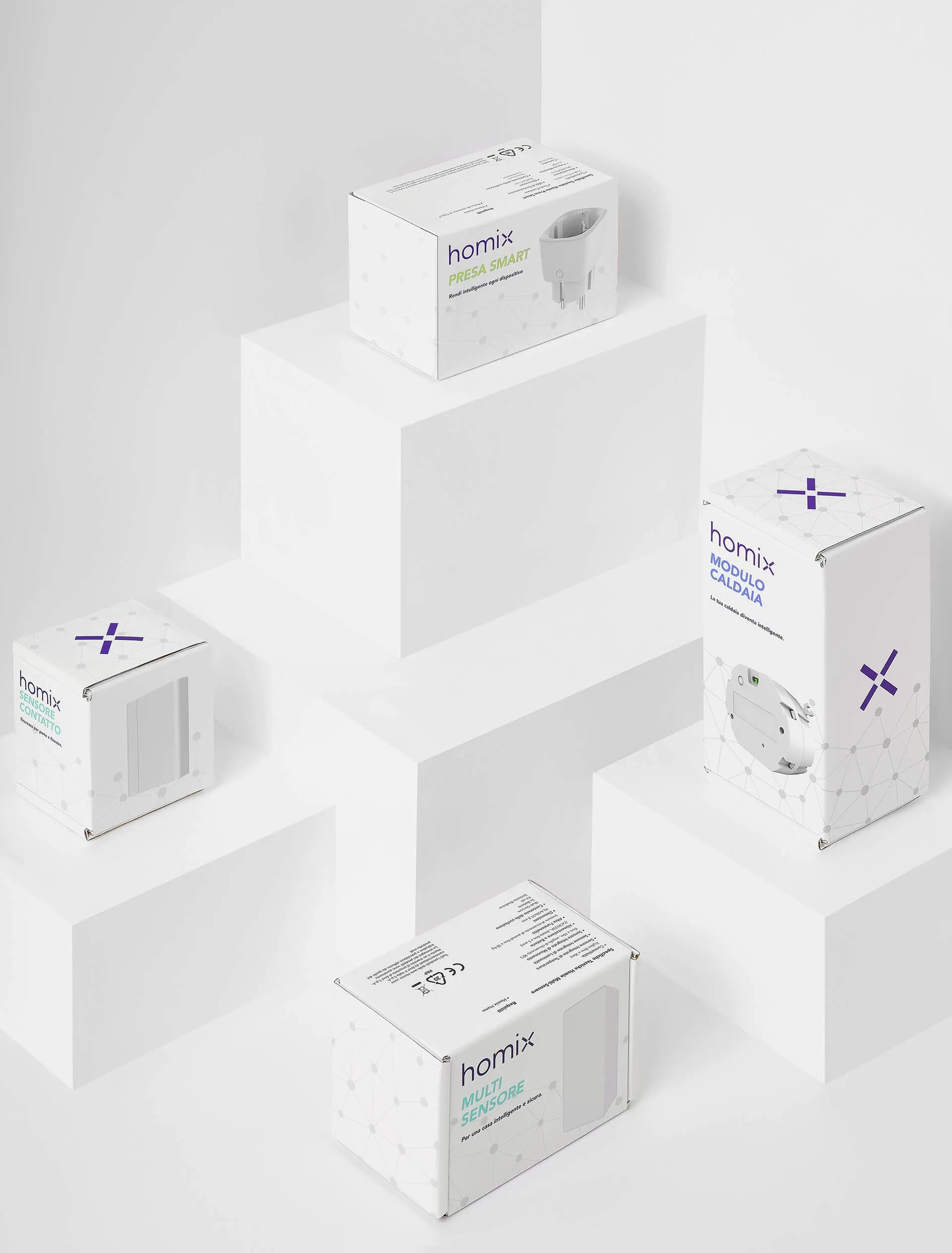 A simple and effective packaging that synthesizes the values and the identity of the brand. Through minimal, flexible and coherent graphics we have chosen to represent one the most important objectives for Enel X: to transform energy into connections that simplify people's lives.