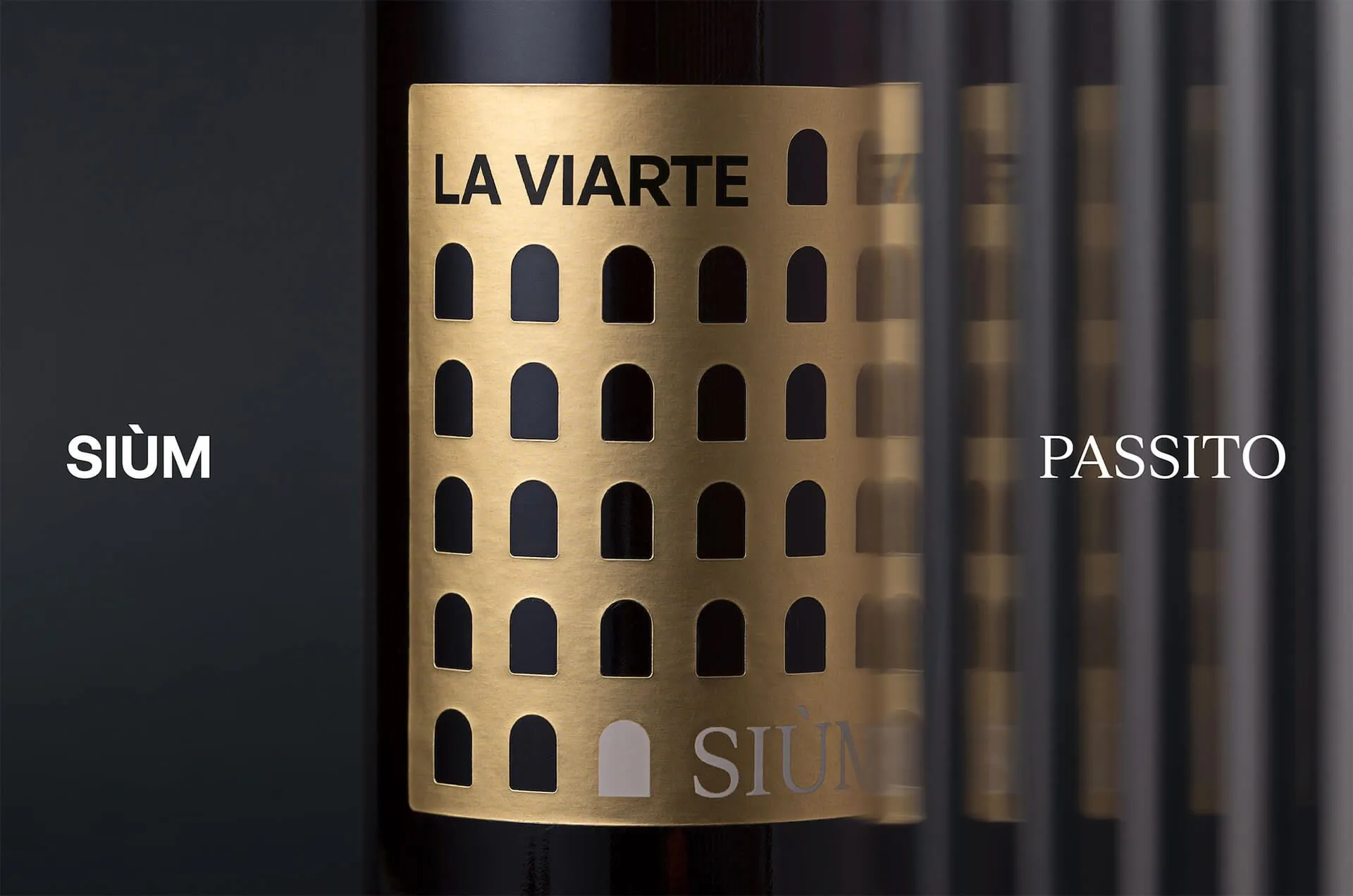 We repositioned and redesigned the La Viarte brand, a winery in the Colli Orientali region (Friuli - Italy), to increase awareness and give strength to its previously anonymous offering. The new identity communicates both the heritage and expertise of the long brand history and the contemporary vision to be an innovative reference point in the wine industry. Siùm, whose name derives from the Friulian word "sogno," meaning "dream," offers an exciting and profound experience; the countless doors on the label each represent an entry into the dreamlike dimension, inviting one to lose themselves in the golden and amber reflections of the bottle.